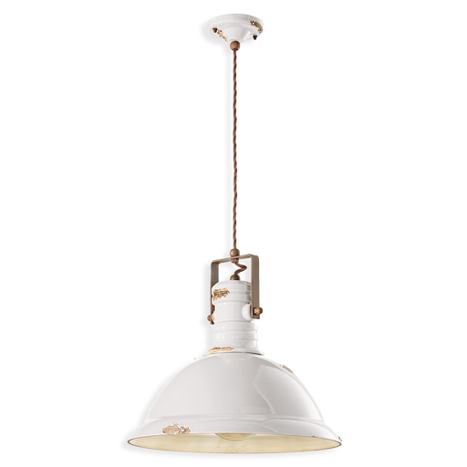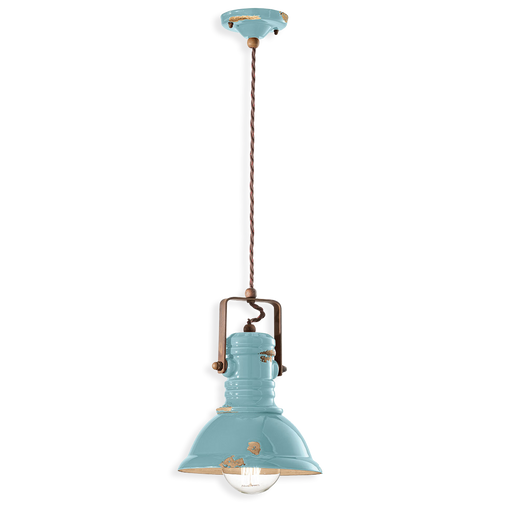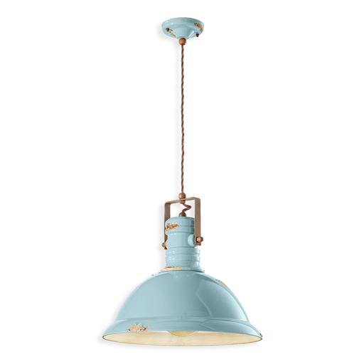 Sospensione a 3 luci in ceramica anticata dalle tonalità vivaci e avvolgenti che illumina ogni locale con allegria e leggerezza. Sulla sua superfic...