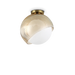 Un "fiore di vetro": guscio esterno che avvolge una sfera interna in vetro bianco acidato, con un effetto luminoso morbido e diffuso.