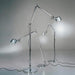 Lampada da terra con base e struttura a bracci mobili in alluminio lucidato. Diffusore orientabile in tutte le direzioni in alluminio anodizzato opaco; snodo in alluminio brillantato. Sistema di equilibratura a molle.