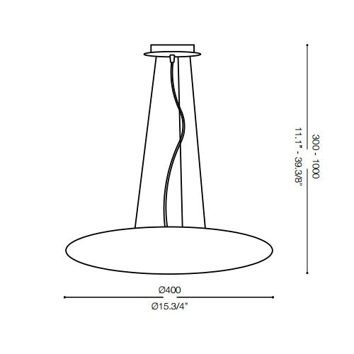 Lampada a sospensione con montatura rifinita in nickel satinato. Diffusore in vetro bianco soffiato e acidato. Sospensioni con cavi in acciaio regolabili in lunghezza con dispositivi automatici.