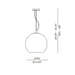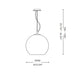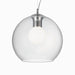 Lampada a sospensione con montatura in metallo cromato. Diffusore in vetro soffiato trasparente. Disponibile in due misure.